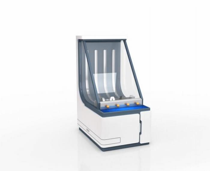 展项主体由4种不同材质的金属片、手柄和轨道等组成 , 4 种不同材质的金属片分别为铜片、不锈钢片、碳钢、弹簧钢 ,观 众可以通过相对应的手柄控制弹片弯曲 ,继而将弹片前方的小球 弹向高处。