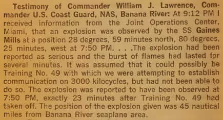 马丁PBM-5“水手”救援机于当日19:27起飞。19:50,附近的邮轮SS Gaines Mills号目睹了空中爆炸(图源:Larry Kusche)