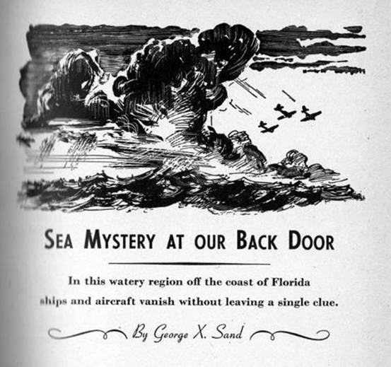 两年后, 专注于超自然现象的《命运》(Fate)杂志刊发了乔治·X·桑德(George X. Sand)的短文《我们后门的海洋之谜》(Sea Mystery at Our Back Door),他详细指出了二战以来多架飞机和轮船的损失,并首次提出了这一“神秘三角区域”的概念。