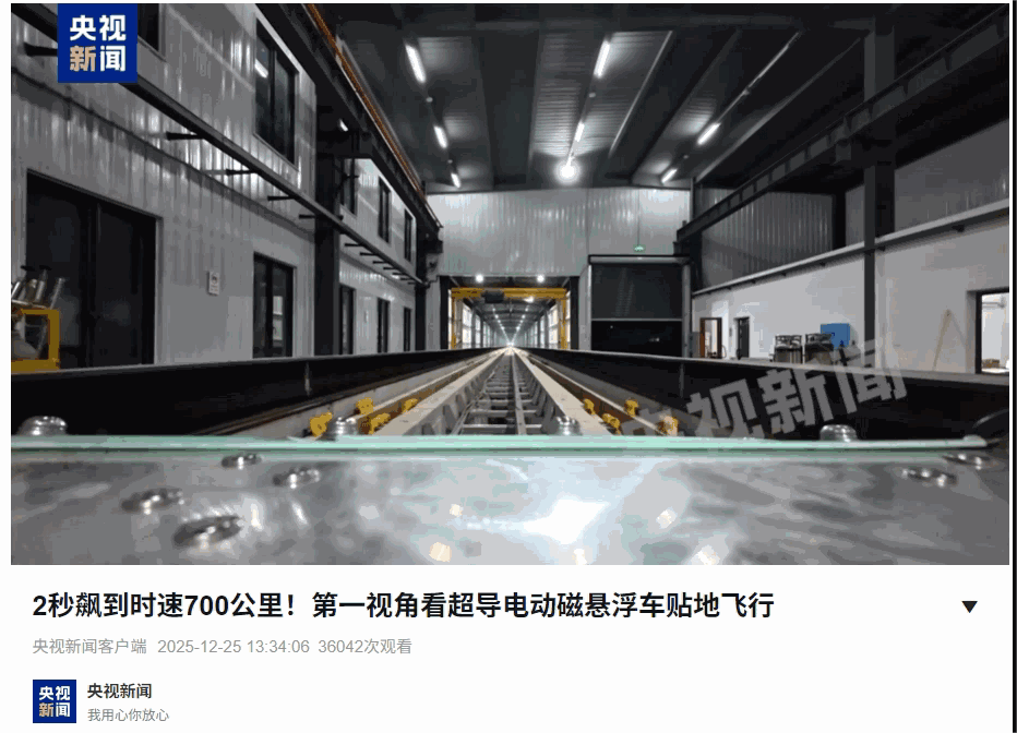 据了解,该团队自1980年开始深耕磁悬浮技术,先后支撑北京地铁S1线、长沙磁浮快线等四条磁浮线路的成功运营。今年1月7日,该团队在超高速超导电动磁悬浮系统试验中实现吨级载荷最高试验速度超过648公里/小时,刷新了当时该领域的世界纪录。时隔不到一年时间,该团队在400米磁悬浮试验线上,成功实现吨级载荷700公里/小时的最高试验速度并安全停车,再次刷新超导电动磁悬浮领域世界纪录。