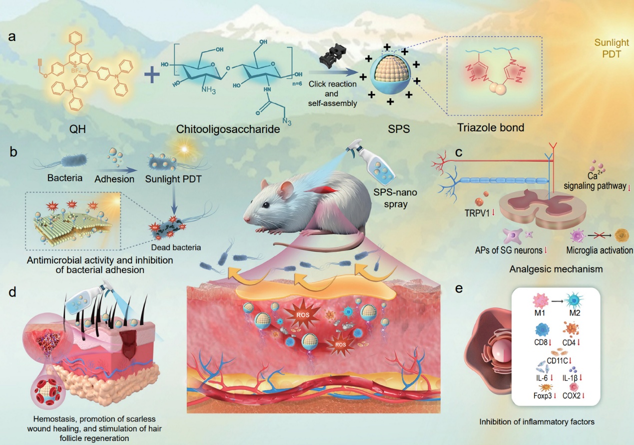 他们研发了一种叫做 SPS 纳米喷雾的新材料,可在自然阳光照射下产生强效活性氧(ROS),实现无创、无痛、高效的杀菌与抗炎,并大幅加速糖尿病皮肤创面的愈合。相关成果近日发表在《国家科学评论》(National Science Review)。